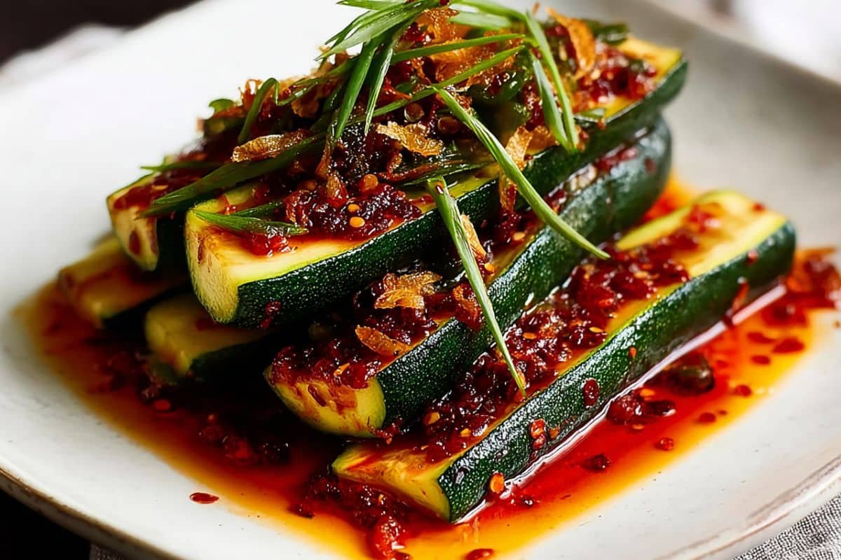 Spicy Asian Zucchini is a vibrant dish bursting with bold flavors and irresistible textures. Think tender zucchini, perfectly seared until golden, coated in a rich, spicy umami sauce, then topped with crispy shallots and freshly sliced green onions. It’s a dish that hits every note—smoky, spicy, savory, and crisp.